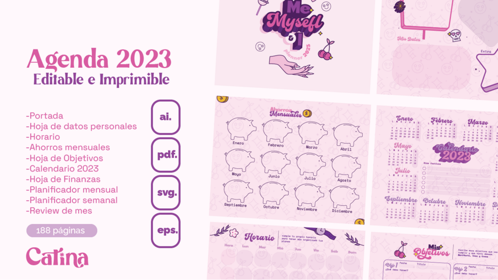 ME, MYSELF AND I Agenda 2023 Editable e Imprimible by Catina