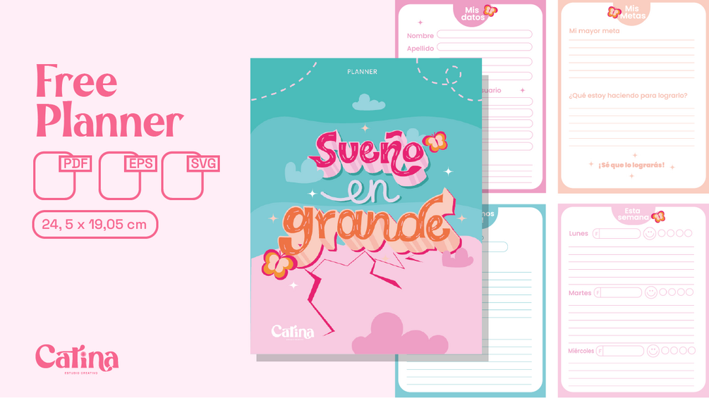 -Cover, Presentation, Goals, To-do month page, Weekly lists, Mood scale, notes.